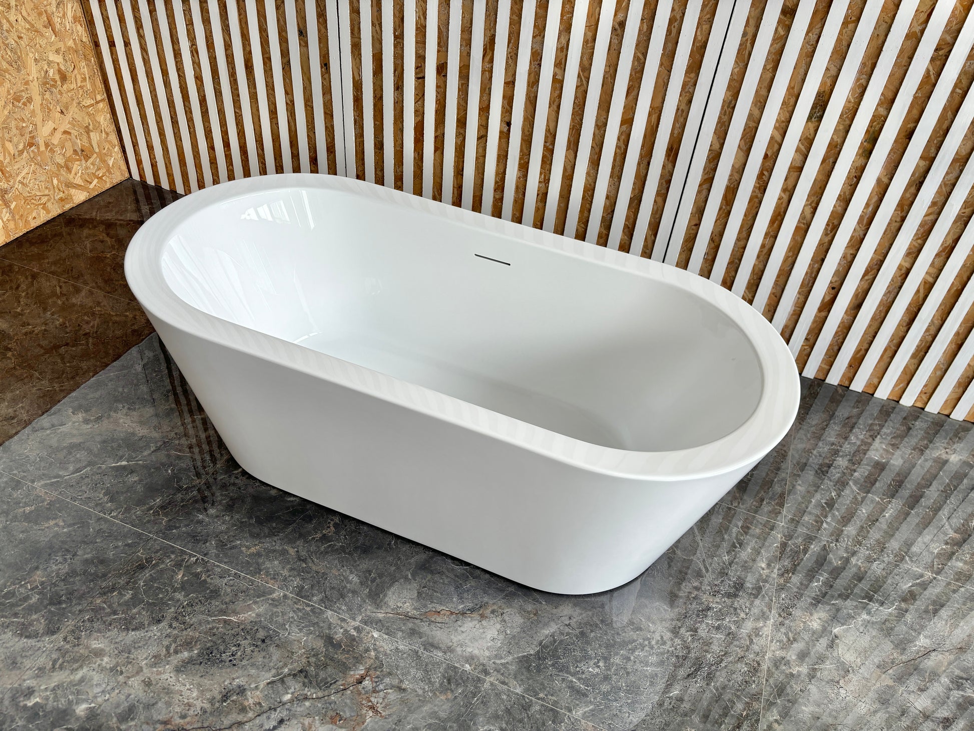 Freestanding acrylic bathtub crafted from premium engineering plastic, offering exceptional durability and heat retention. Its smooth interior surface delivers a comfortable bathing experience while facilitating easy cleaning and maintenance. Featuring a sleek, contemporary design, it complements diverse bathroom decor styles. Equipped with sturdy support legs for straightforward installation. Its well-proportioned dimensions maximize space utilization, making it an ideal choice for upgrading your bathroom.