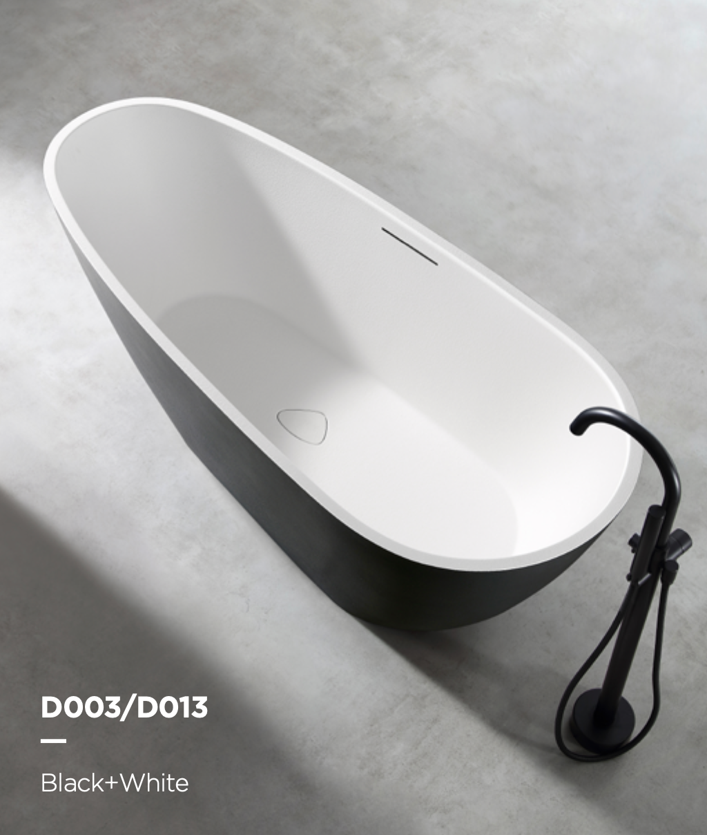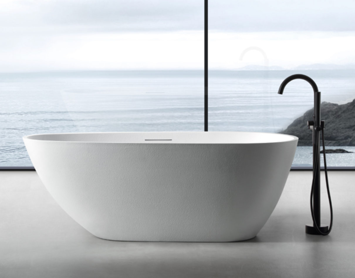 Designed for deep soaking relaxation, this tub combines form and function—resistant to stains, easy to clean, and built to last. Paired effortlessly with a matte black freestanding faucet, it becomes a statement piece in any modern space.